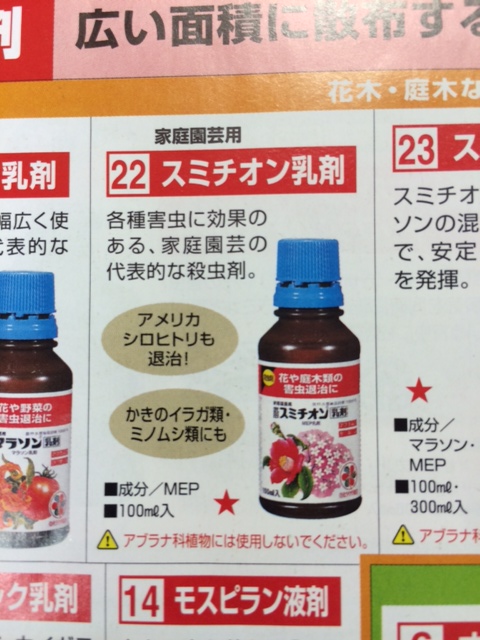 スミチオンといって、ホームセンターなどで簡単に手に入ります!
