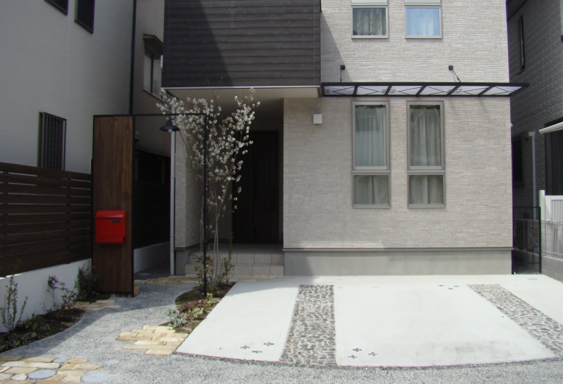 シンプルな外観だからこそ、あえてRの形のアプローチにしてかわいらしさをプラス。