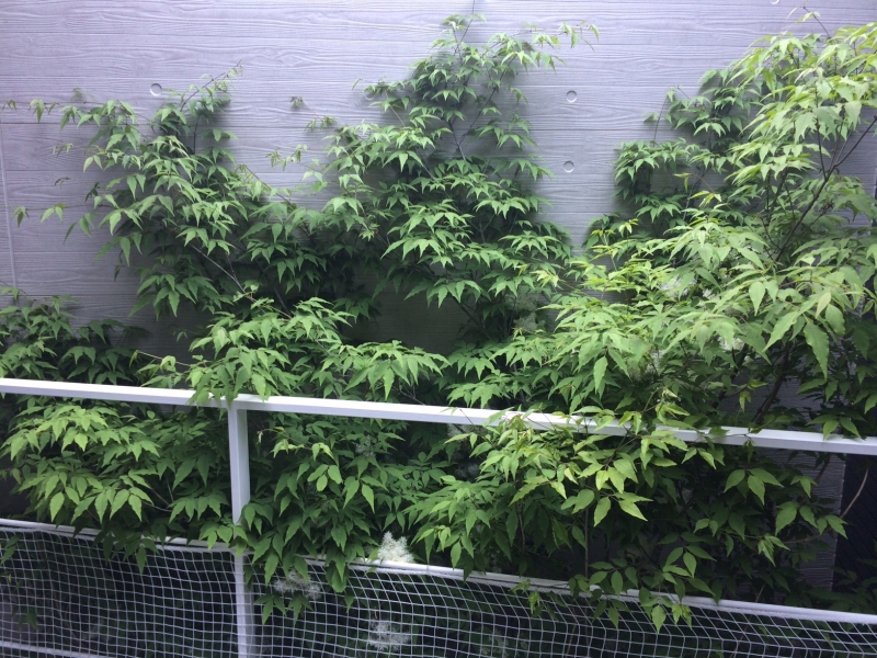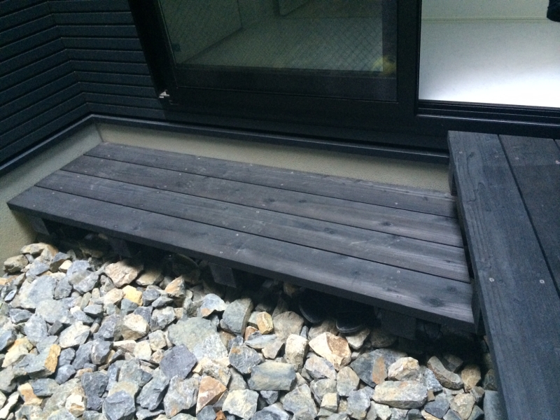 スタイリッシュな「黒」と木のナチュラル感の組み合わせがナチュラルモダンなお庭。 中庭のハイノキが心に安らぎを与えてくれます。
