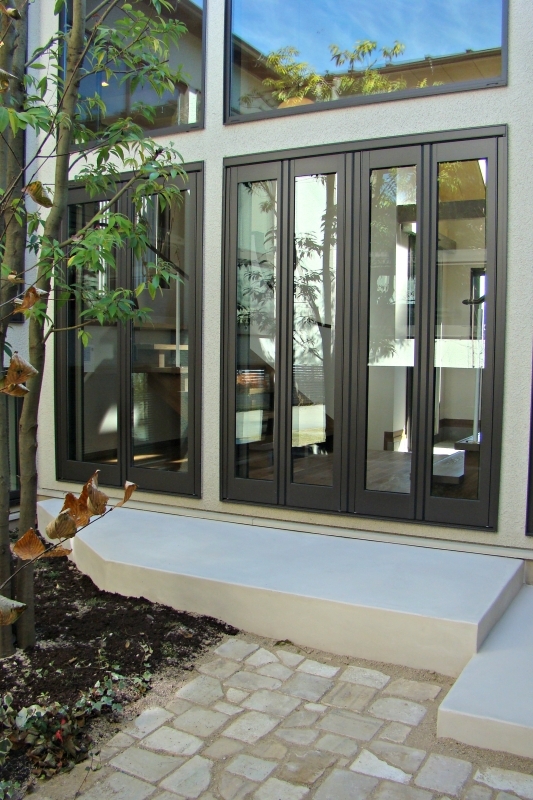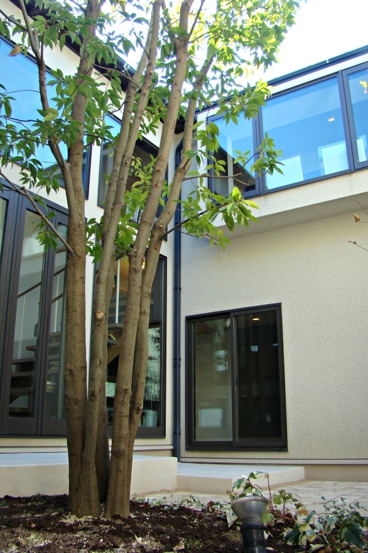 段差やシンボルツリーを植えて空間を楽しんで…。