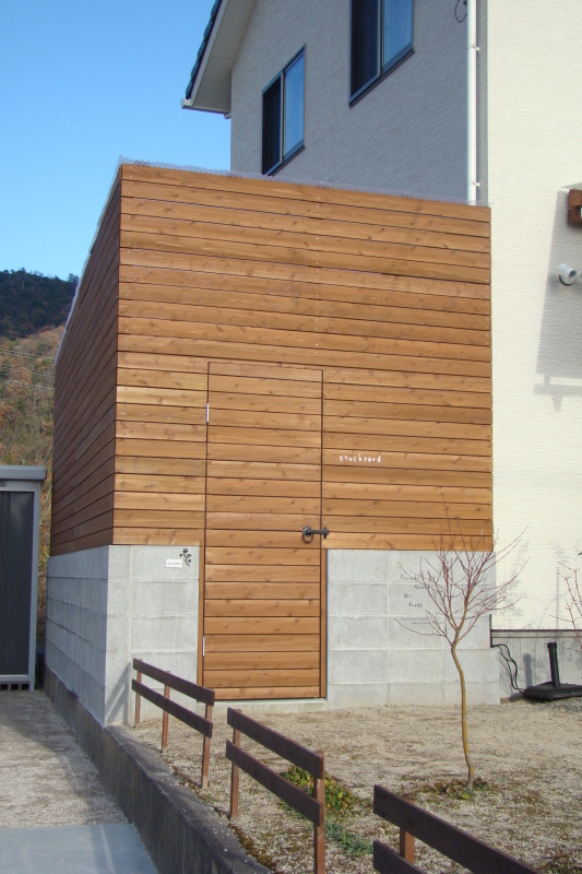 シンプルながら 優しい木の温もりとブロックの組み合わせが 相性良い収納力たっぷりの物置きが完成しました。 お庭にこれほどの物置きがあると 何かと重宝できそうです。